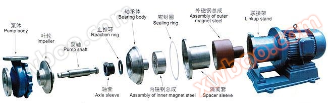 (6) después de 1000 horas de funcionamiento normal de la bomba magnética, se debe desmontar e inspeccionar el desgaste del rodamiento y el anillo móvil final, y reemplazar las piezas vulnerables que no deben usarse más.